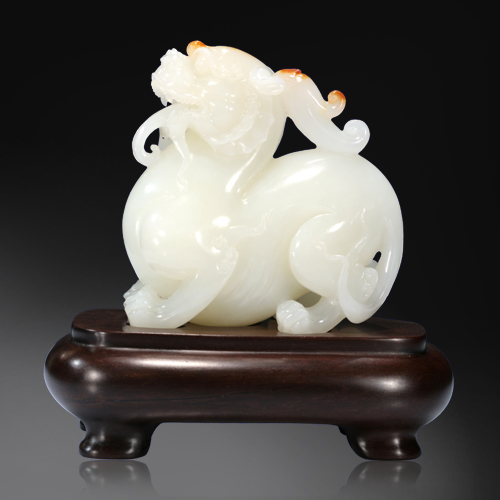 顏色潔白,質(zhì)地細(xì)膩,油潤度極佳,手感溫潤順滑,圓雕一貔貅,兩眼圓睜,口張吐舌,頭部有紅糖,色俏麗喜人,瑰艷奪目,有鴻運(yùn)當(dāng)頭之意此件雕刻精細(xì),姿態(tài)寫意,簡約流暢,惟妙惟肖。